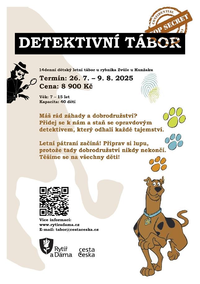 Cesta Česka organizuje letní tábor pro děti od 7 do 15 let, který se uskuteční od 26. července do 9. srpna 2025 v základně Ledeta u Kunžaku. Na táboře s názvem Rytíř a Dáma se děti naučí samostatnosti, týmovosti a slušnosti prostřednictvím detektivní celotáborové hry. Závazné přihlášky jsou přijímány do naplnění kapacity.